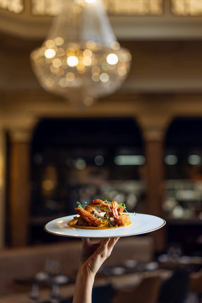 Liberamente ispirato al film Il Marchese del Grillo, il ristorante fonde due anime molto diverse tra loro: da una parte quella del Marchese con i fasti e gli arredi sontuosi, dall’altra quella del Carbonaro con l’autenticità e il calore delle osterie romane. Il risultato è un salotto enogastronomico elegante e autentico, dove divanetti in velluto, preziosi stucchi e grandi lampadari di cristallo si accompagnano a tavoli in legno e sedie di fattura artigianale.