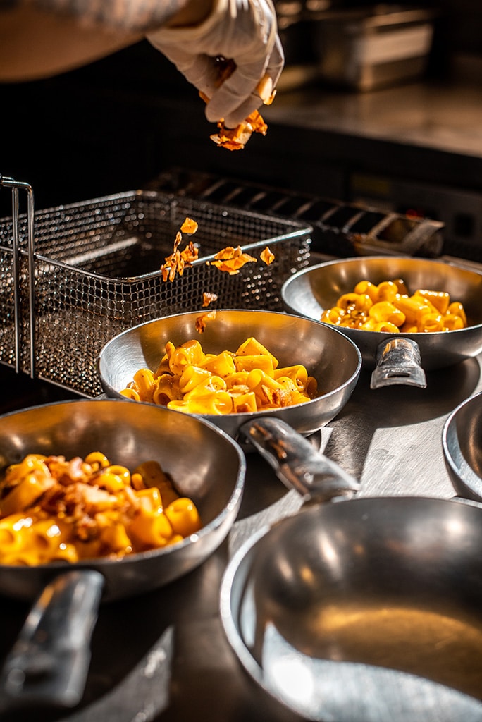 Il cuore del locale è la corte centrale ovale, con maestose colonne che fanno da quinta scenica alla cucina, al cocktail bar a vista e al piccolo palco dedicato all’accompagnamento musicale live. Accanto, un ambiente unico nel suo genere: un intimo e prezioso “ristorante nel ristorante”, ovvero una sala con cucina e cocktail bar privati da riservare per eventi e ricorrenze, con tanto di chef e barman dedicati. Completa il locale un’altra grande sala con affaccio su strada per celebrazioni speciali.