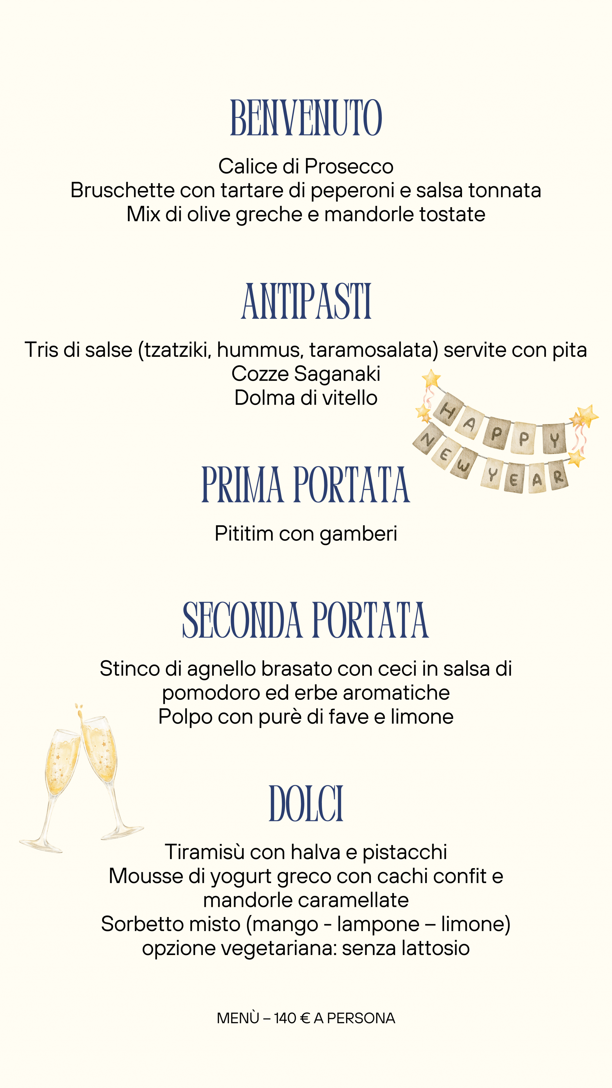 SERVED DINNER MEAT MENU PLACE | 1 BOTTLE OF WINE EVERY 2 PEOPLE | NYE 2026 PARTY