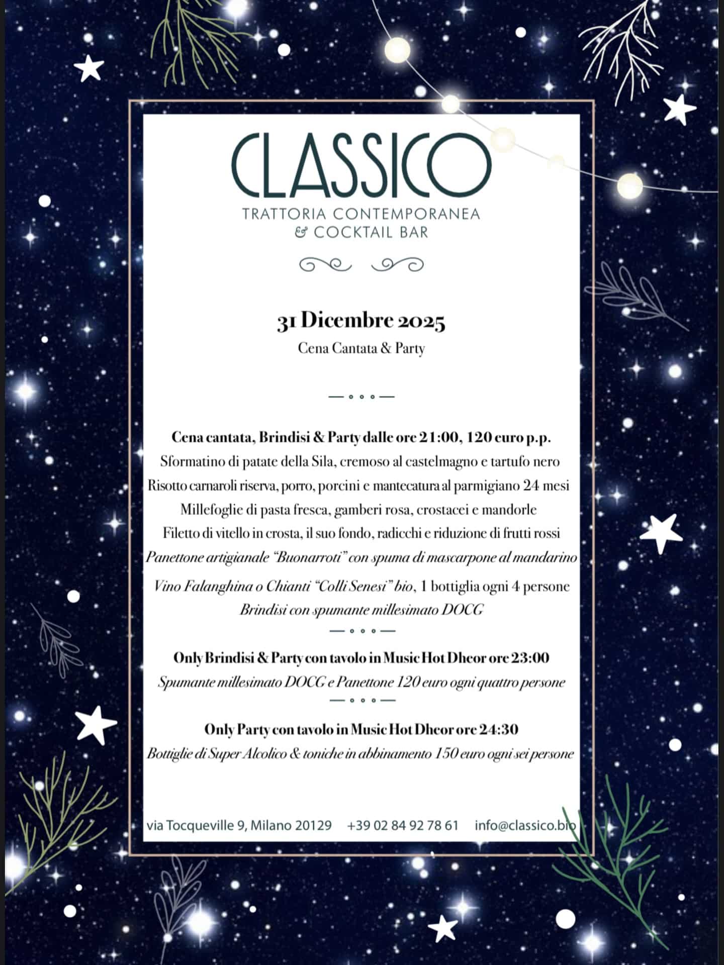 Cenone di Capodanno per due persone Classico Restaurant & Bar Corso Como *